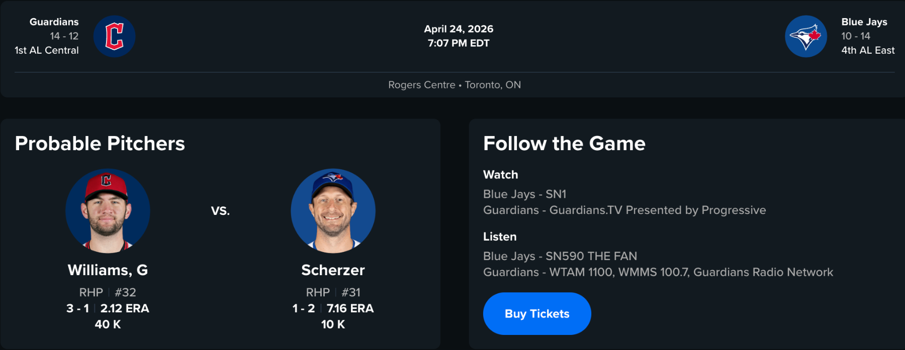 Terminator Old-Timey Member Posted 7 hours ago Posted 7 hours ago Gavin Williams vs. Scherzer Cantillo vs. Gausman Cecconi vs. Cease Tough matchup tonight but I like the other two a lot. The reinforcements are coming, it's probably series to series at this point. So let's win this series and then go on a run in May. Orgfiller, Spanky__99 and Brandon Glick 3